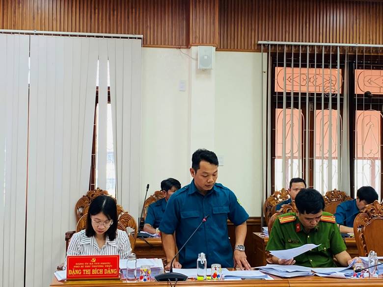 Đồng chí Đỗ Văn Thìn - Chỉ huy Trưởng Ban CHQS xã báo cáo tại buổi họp xét duyệt