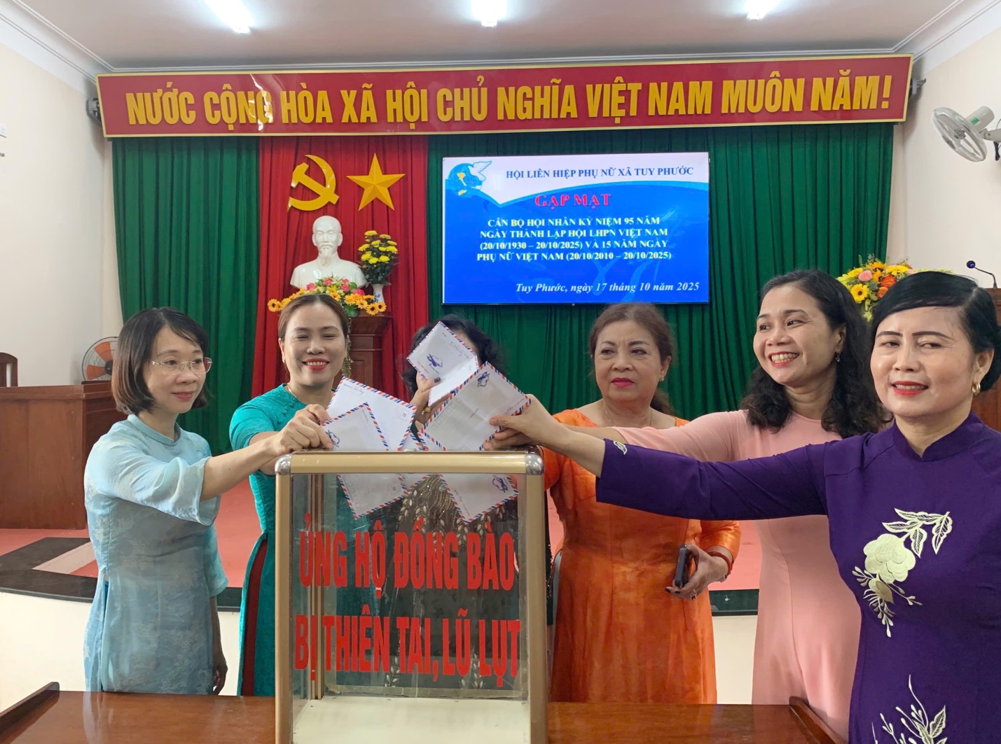 Phát huy tinh thần đoàn kết, sẻ chia, tại buổi gặp mặt, Hội LHPN xã Tuy Phước đã phát động phong trào quyên góp ủng hộ đồng bào miền Bắc bị thiệt hại nặng nề do ảnh hưởng của bão số 10 và 11, hoạt động đã nhận được sự hưởng ứng tích cực từ cán bộ, hội viên và các đại biểu tham dự.