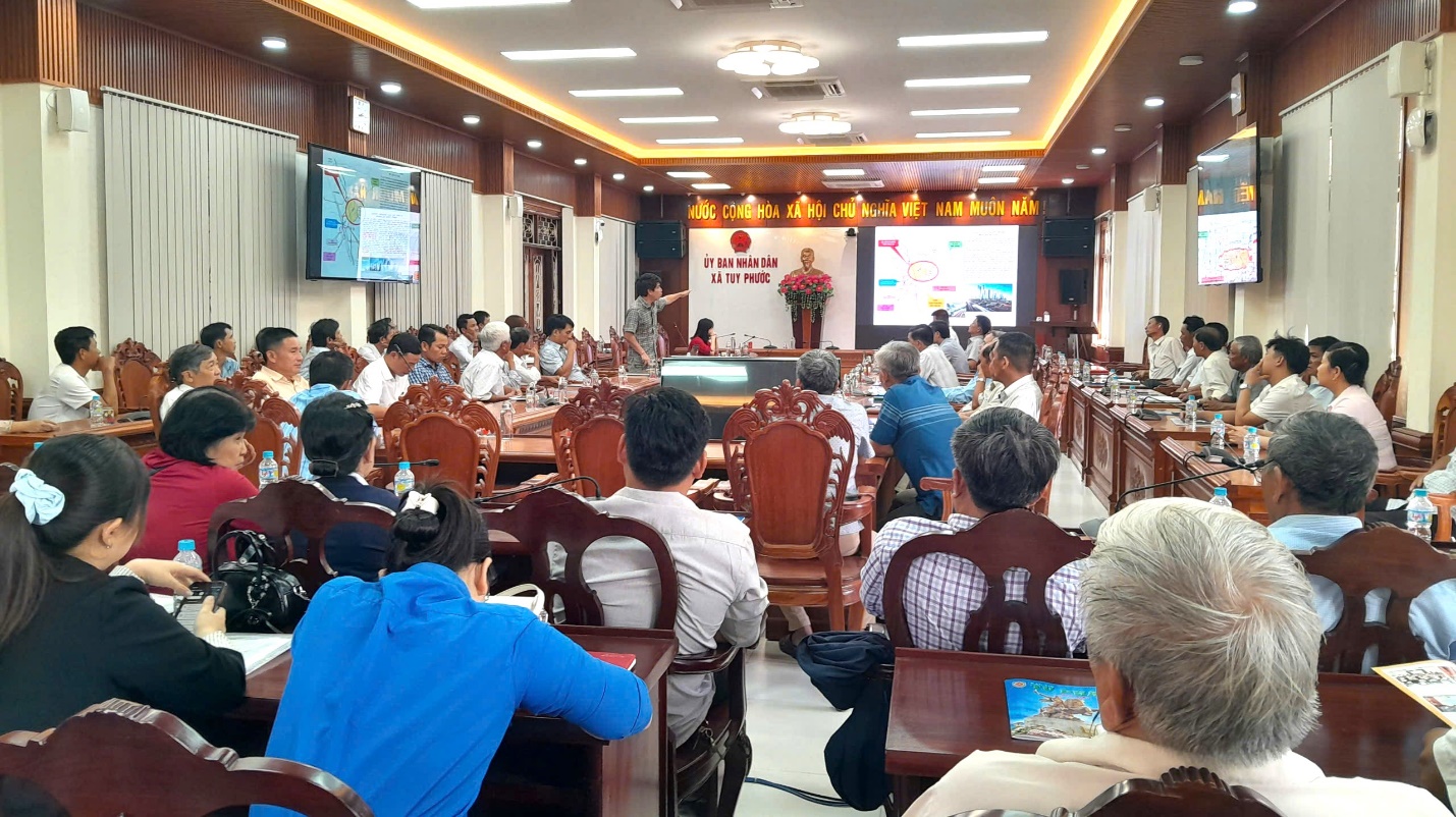 Tại hội nghị, đơn vị tư vấn đã trình bày nội dung dự thảo Quy hoạch chung xã Tuy Phước với các định hướng phát triển không gian, sử dụng đất, hệ thống hạ tầng kỹ thuật và các dự án trọng điểm trong thời gian tới.