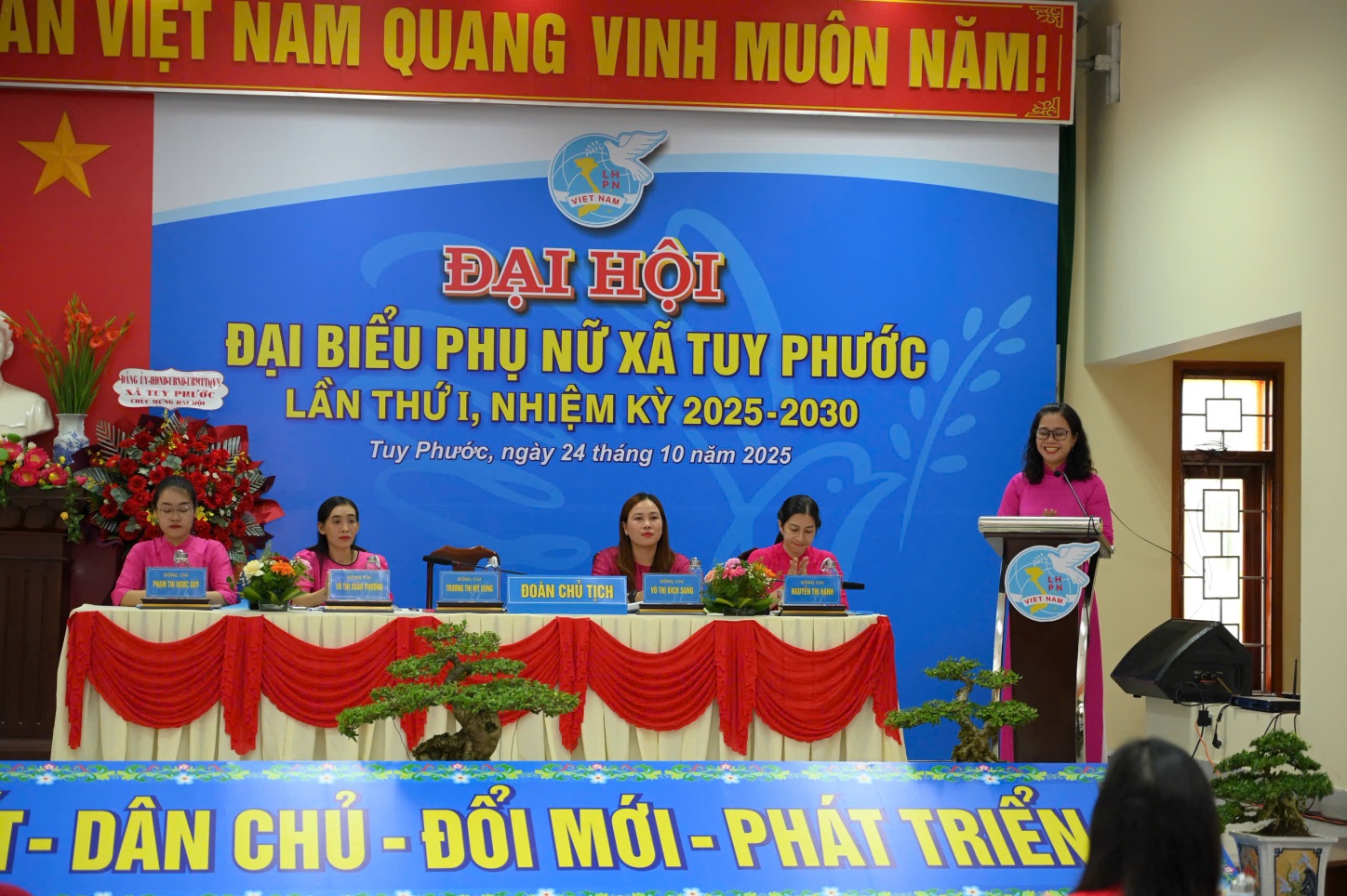 Đại hội đã công bố Quyết định chỉ định Ban Chấp hành Hội LHPN xã Tuy Phước gồm 41 đồng chí ủy viên, đồng chí Trương Thị Mỹ Dung được chỉ định giữ chức Chủ tịch Hội LHPN xã nhiệm kỳ 2025-2030.