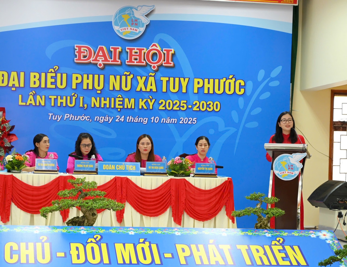 Với phương châm “Đoàn kết-Dân chủ-Đổi mới-Phát triển”, nhiệm kỳ 2025-2030, Đại hội Hội LHPN xã Tuy Phước lần thứ I đã xác định và đề ra 6 chỉ tiêu cụ thể và 5 nhóm nhiệm vụ trọng tâm. Trong đó, xác định khâu đột phá là thúc đẩy bình đẳng giới trong các lĩnh vực, góp phần thực hiện chiến lược Quốc Gia về bình đẳng giới.