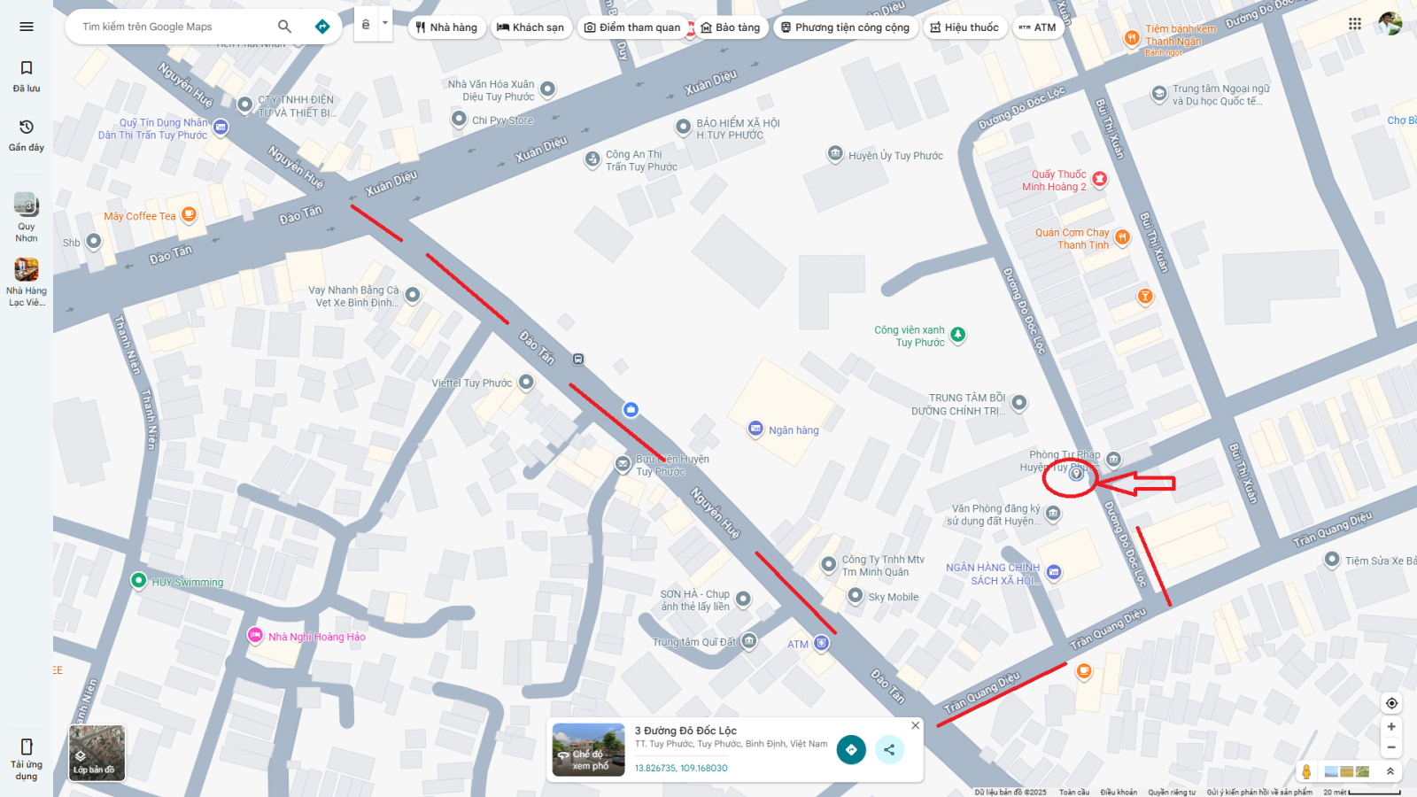 (tại ngả 4 đèn giao thông đi theo đường viền đỏ để đến 03 Đô Đốc Lộc)